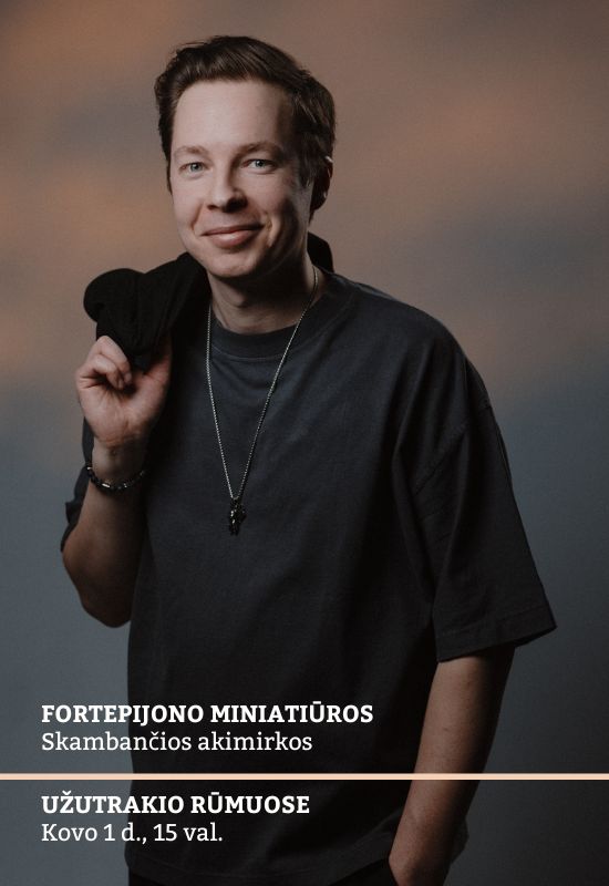 „Skambančios akimirkos“ – tai fortepijono miniatiūrų popietė, kurioje pianisto Jorio Sodeikos interpretacijose susitiks Fryderyko Šopeno jautrumas ir Claude’o Debussy spalvos – muzika, gimstanti dialoge, tyloje ir trumpame buvime čia ir dabar. Kovo 1-oji šio koncerto nuotaikoje įpins lengvą romantizmo giją, siejamą su Fryderyko Šopeno gimtadieniu.